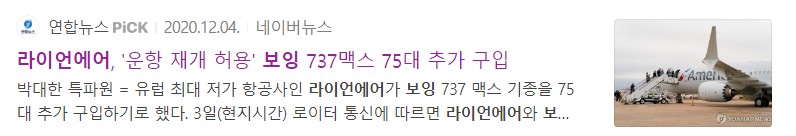 지난 2~3년간 보잉의 대표적인 상업용 항공기인 보잉 737 맥스가 잇다라 추락하게 되자, 2019년 에티오피아 항공의 보잉 737 맥스 항공기가 추락하였고, 2018년에도 인도네시아의 라이온에어 항공사 소속의 보잉 737 맥스기가 연달아 추락을 하자 2019년 3월 미국과 브라질을 시작으로 보잉 737 맥스 항공기에 대한 운행을 중지한 바 있었습니다.