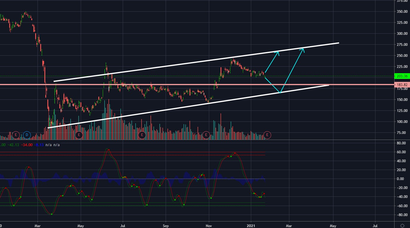 보잉의 경우 20년 초에 비해서 괜찮아진 실적의 기대감으로 충분히 250선을 터치할 것으로 전망이 됩니다. 하지만 4분기 실적 발표인 27일 이후 실적을 보시고 진입하시는 걸 추천드리며, 이후 방향이 하방으로 틀게 될 경우 180선까지 지켜보시다가 매수하는 것을 추천드립니다.