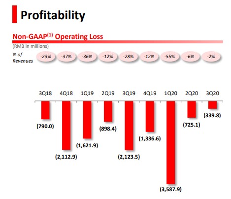 영업손실은 매출의 약 2%인 3.39억 위안(한화 약 586억 원)을 기록하였으며, 지난 20년 1분기 큰 적자폭을 꾀나 줄인 모습을 보여주고 있습니다.