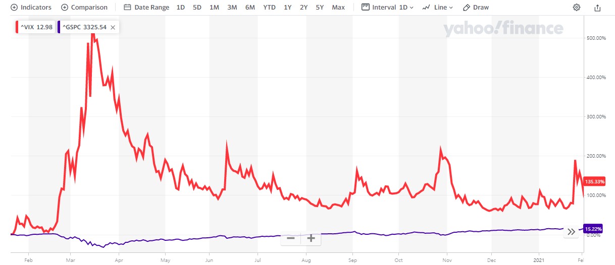 안녕하세요, 김스근입니다. 최근 개인과 공매도 기관의 피 튀기는 싸움인 게임스탑 주식으로 인하여 미국 증시에 큰 혼란이 잠깐 왔었는데요, 이러한 증시에 혼란이 오게 되면 공포지수가 한순간에 확 오르는 경향이 있습니다. 오늘은 증시에 혼란이 오거나 폭락이 오게 되면 수익이 나는 공포지수인 VIX에 관하여 같이 알아보겠습니다.