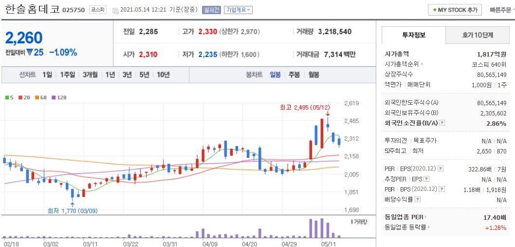 한솔홈데코 - 코스피 025750