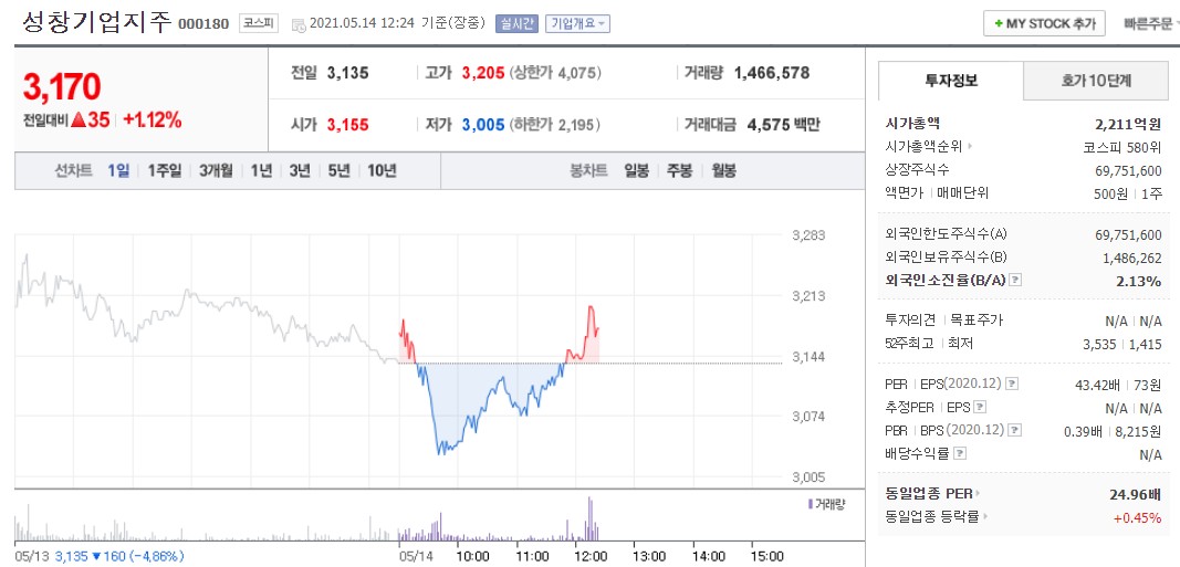 3. 성창기업 지주 - 코스피 000180