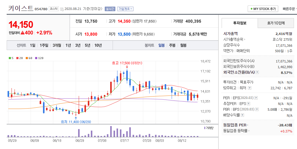②키이스트(054780 / 코스닥)