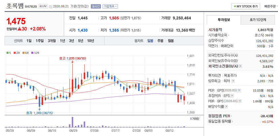 ④초록뱀(047820 / 코스닥)