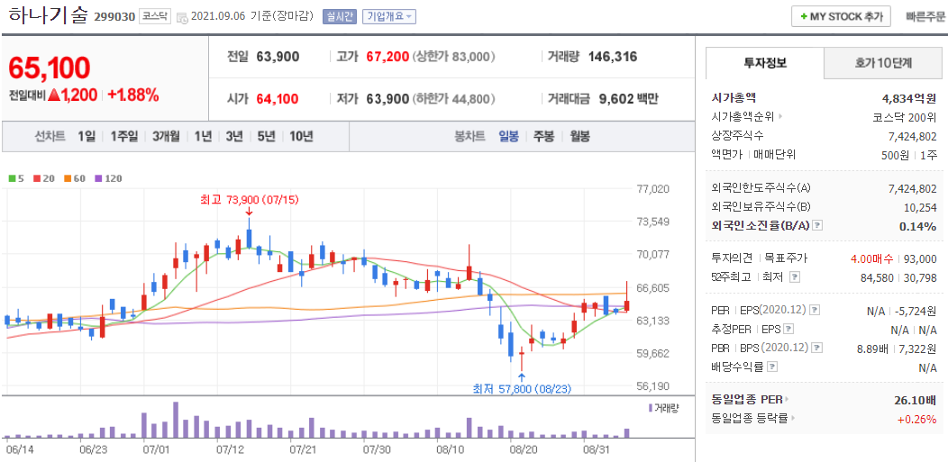하나 기술의 21년 1분기 실적 기준 전년 동기 대비 매출액은 53% 상승한 모습을 보여주었지만, 영업손실은 71% 증가한 모습을 보여주었습니다.