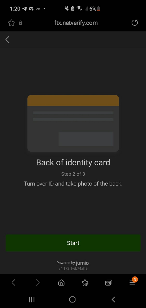 아까 기입한 메일을 확인하시면 FTX 거래소에서 메일이 하나와 있을 겁니다. 메일 확인 후 here 버튼을 누르게 되면 신분증을 이용한 신원확인이 시작이 됩니다.