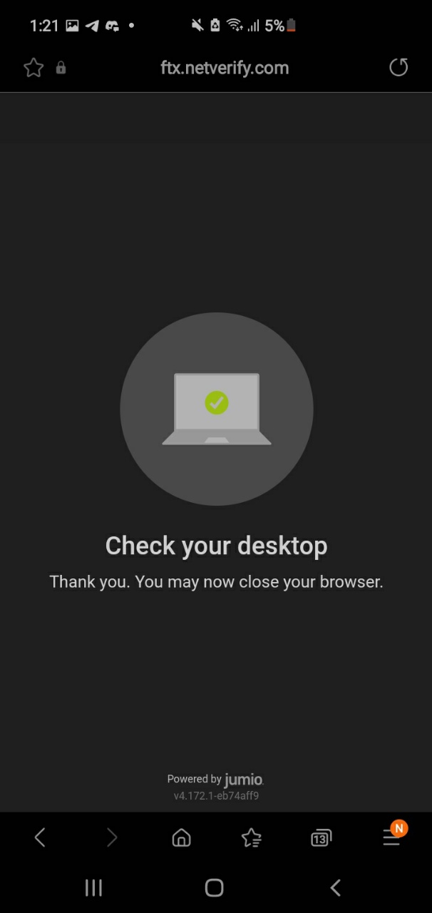 총 3가지 인증을 거치게 되면 'Check your desktop' 라는 문구가 나오게 됩니다. PC를 확인하게 되면 아까 신원인증을 진행 중이던 사이트가 또 무언가를 기입하는 사이트로 바뀌었을 겁니다. 확인 후 기입하시면 됩니다.