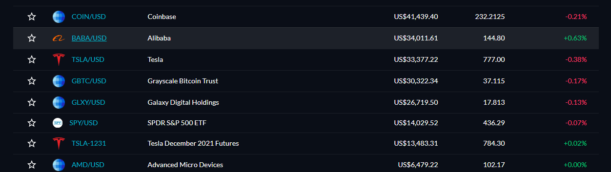 FTX거래소의 경우에는 테슬라, 알리바바, 암드, 트위터 등 여러 미국의 우량주뿐만 아니라 니오, 게임스탑, 암씨(AMC)와 같은 여러 최근 핫한 종목에 대한 투자상품을 제공하기도 합니다. 또한 지난 미국 대선에 대한 거래 상품을 출시하기도 하였습니다.