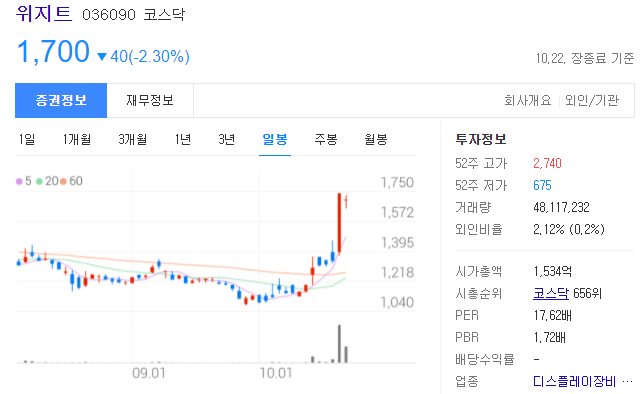위지트의 경우에도 비덴트와 마찬가지로 비트코인 거래소인 빗썸의 일정 지분을 보유하고 있습니다.