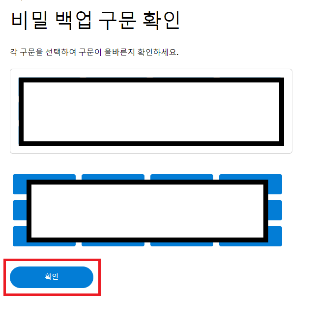 다음 단계는 앞서 입력한 암호보다 더욱 중요한 '복구 구문' 즉, 시드키를 생성하는 단계입니다. 흔히 사용하는 도어록의 마스터키라고 보시면 되는데요, 차후 메타마스크 지갑 계정을 분실하여도 해당 시드키만 있다면 다시 복구가 가능합니다.