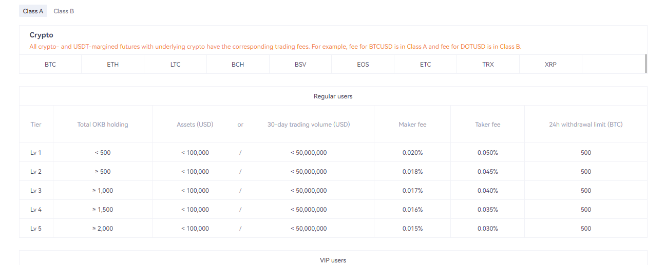 다만 오케이엑스 거래소의 경우에는 1달간 일정 거래량 이상 발생이 되고, 일정 자본의 사용자의 경우에는 OKX 거래소에서 VIP 혜택을 제공이 되는데 이러한 VIP혜택을 받게 되면 많은 거래수수료 감면 혜택을 받을 수 있습니다.
