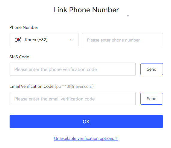 빙엑스 가입할 때, 이메일을 통하여 가입한 유저의 경우 본인 소유의 휴대전화를 연동할 수 있습니다. 휴대전화를 본인의 빙엑스 계정과 연동함으로써, 더욱 높은 보안 등급을 유지할 수 있습니다.