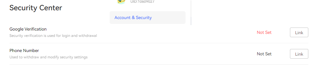 빙엑스 거래소 회원가입을 완료하셨다면, 우측 상단에 있는 아이콘에 커서를 올려 'Identity Verification' (신원인증) 메뉴로 이동하여 주시면 됩니다.