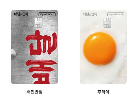 배달의민족은 다양한 국내 카드사와 파트너를 맺은 적이 있습니다. 대표적으로 현대카드, 삼성카드와 제휴하여 배달의민족과 어플에 대한 캐시백, 할인혜택을 제공하는 신용카드 상품이 있습니다.