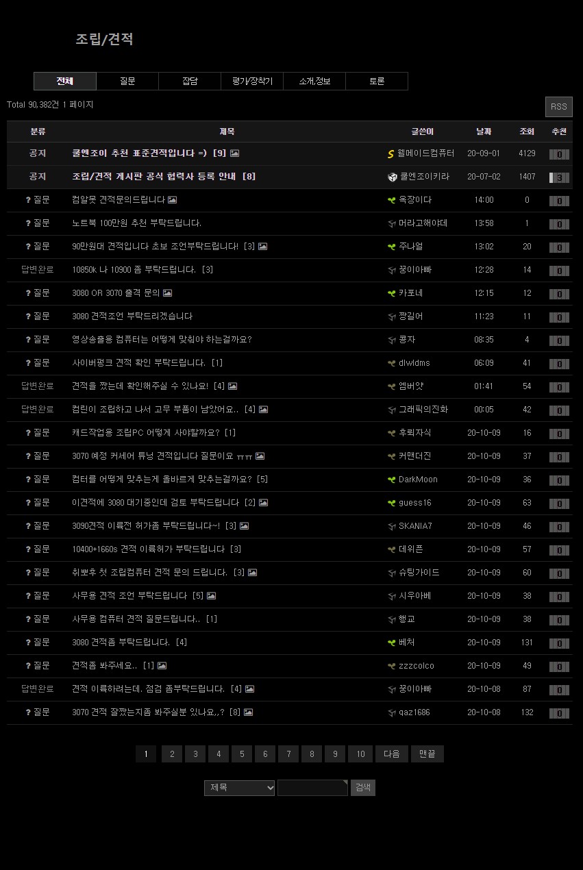퀘이사존은 조립식 컴퓨터 견적 전용 게시판이 따로 있을 정도로