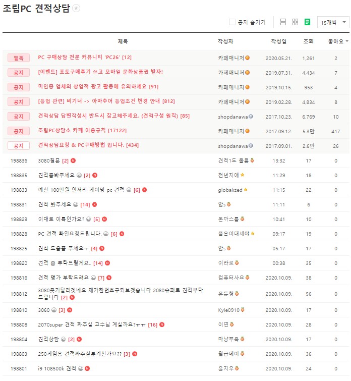 PC견적요청이기 때문에 비슷한 사양의 글을 참고할 수도 있는 게 장점입니다.