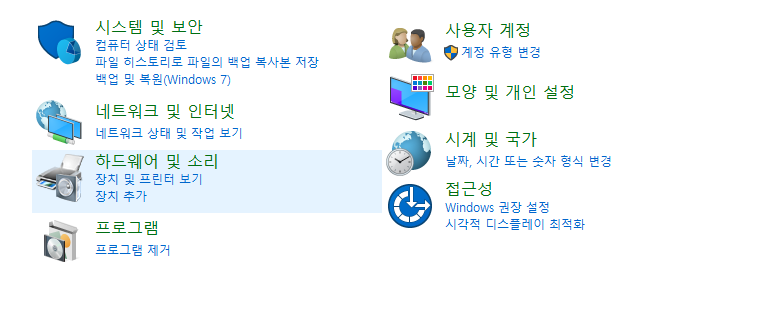 우선, 시작탭 - 검색창에 제어판을 검색해서 제어판에 접속하신 후, '네트워크 및 인터넷' 버튼을 눌러주세요. 눌렀다면, 네트워크 및 공유 센터 버튼을 누르고, 어댑터 설정 변경을 눌러주세요.