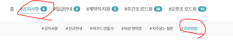 쿠팡 대구6센터 기준으로, 상단의 메뉴탭 - '#지원방법' 에 들어가시면, 쿠펀치 어플을 통해 간편하게 단기직 지원을 할 수 있는 방법에 대해 안내를 받을 수 있습니다.