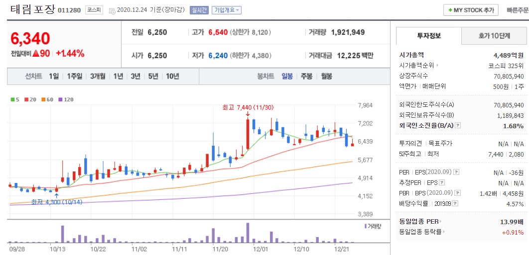 5. 태림포장 - 코스피 011280