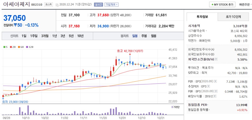 3. 아세아제지 - 코스피 002310
