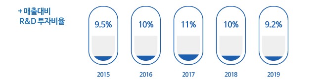 지속적으로 매출의 약 10%는 R&D(연구 개발) 비용으로 투자하고 있는 것을 확인하실 수 있습니다.