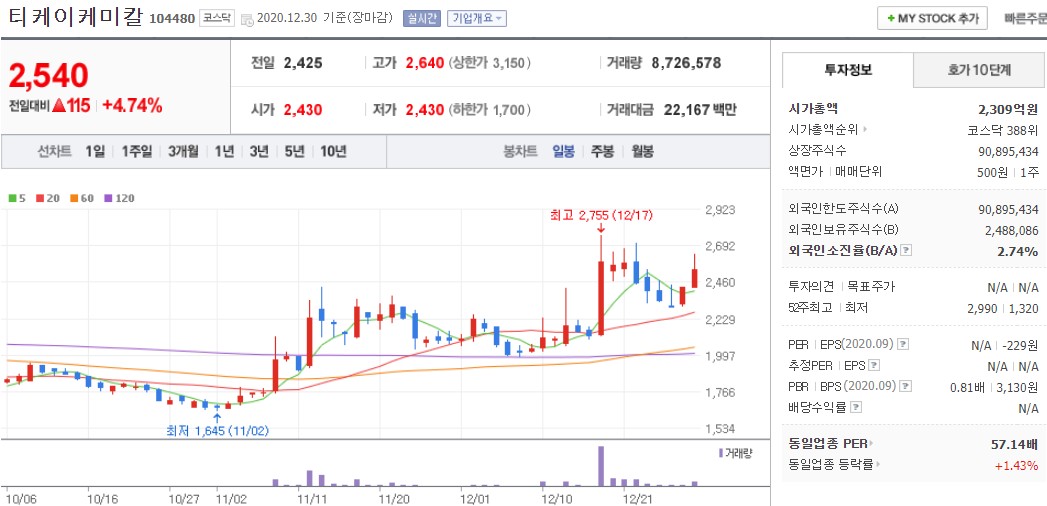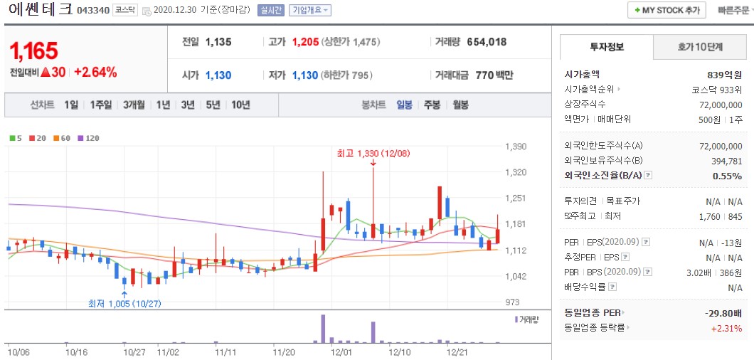 2020.11.30 - [특징주]에쎈테크, 콜드체인 관련 밸브 생산 소식에 강세