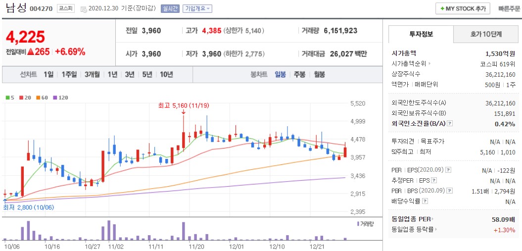2020.12.30 - KNN·남선알미늄, 홍정욱 관련주·이낙연 관련주 모두 상승세…KNN 소폭 상승 이어 남선알미늄 2% 상승
