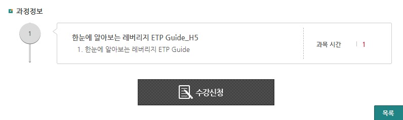 이러닝을 눌러 과정 검색 및 신청화면에 들어오시게 되면 검색창에 과정명으로 두시고 '레버리지'를 입력 후 검색을 눌러주세요 검색을 하게 되면 '한눈에 알아보는 레버리지 ETP Guide'를 클릭해주세요.