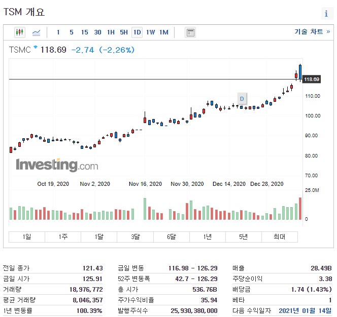 TSMC - 티커명 : TSM(뉴욕거래소)