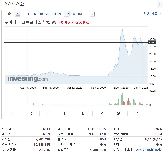 ▲루미나 테크놀로지스 - 티커명 : LAZR